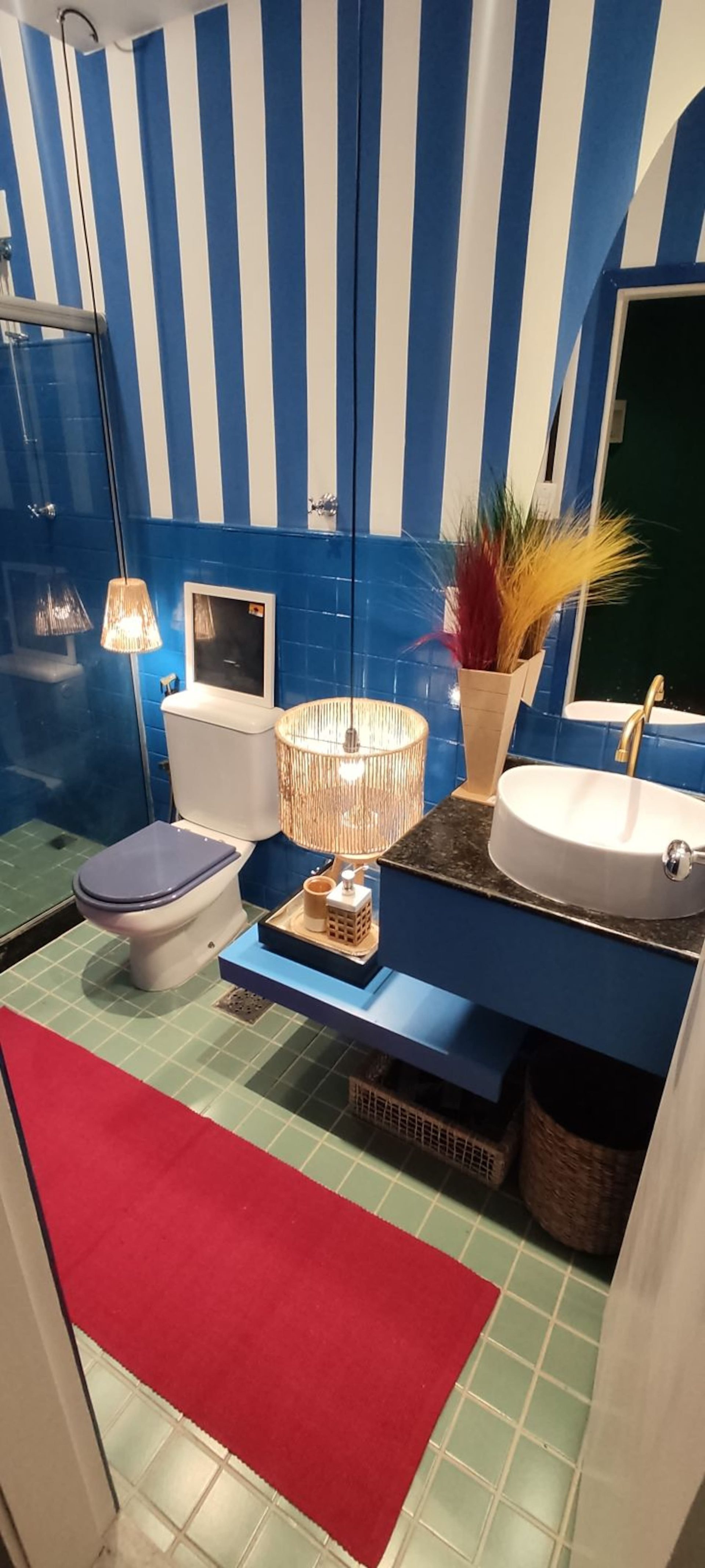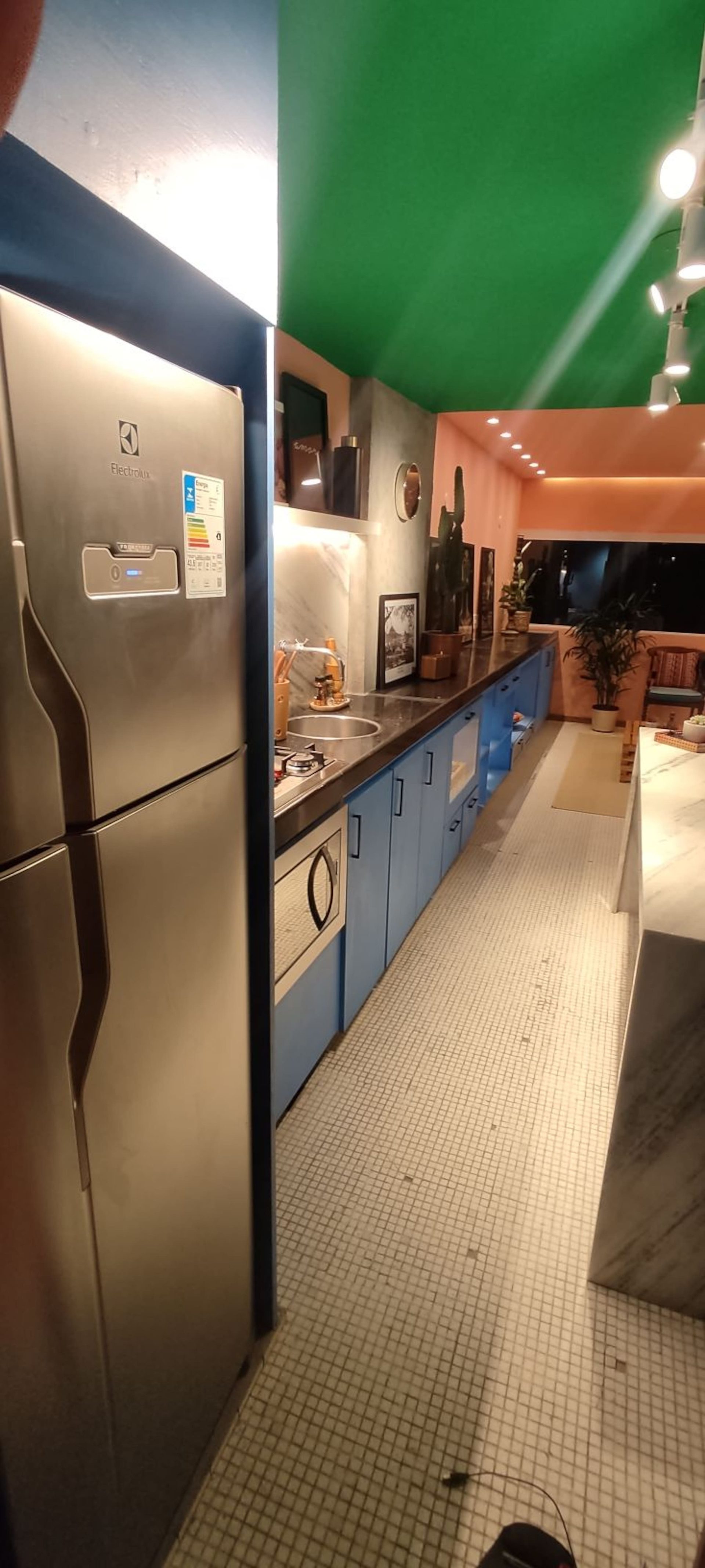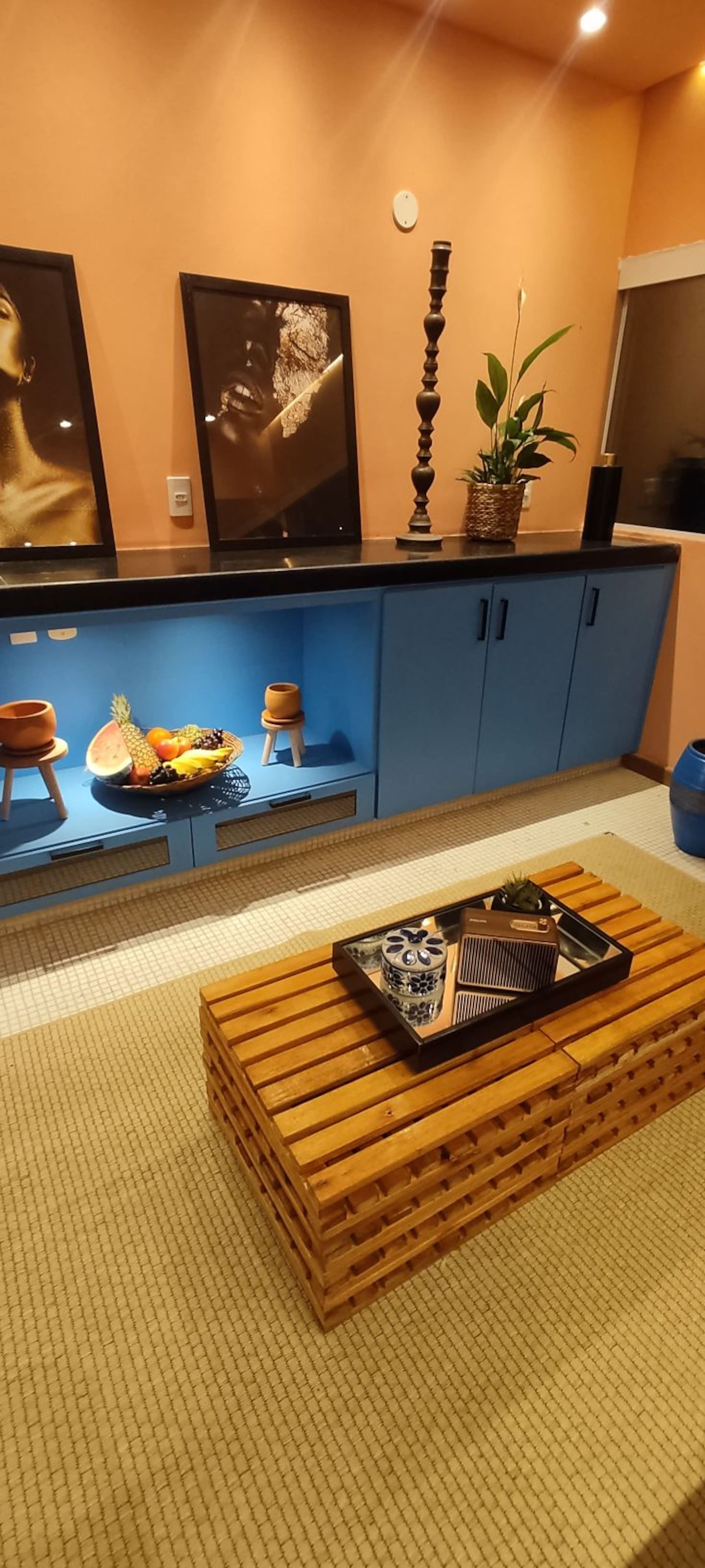 (antique chair included)Lux Vidigal was designed by a Los Angeles interior designer who understood that a favela apartment with a 360° view deserved better than beige linens and a Nespresso. Instead: antique Brazilian furniture beside contemporary appliances, a 1920s King Louis chair in the corner of the living room, cobalt blue cabinetry in a full gourmet kitchen, a soaking tub that fills from a rooftop solar heater, and a 43-inch smart TV that nobody ever turns on because the window is better.