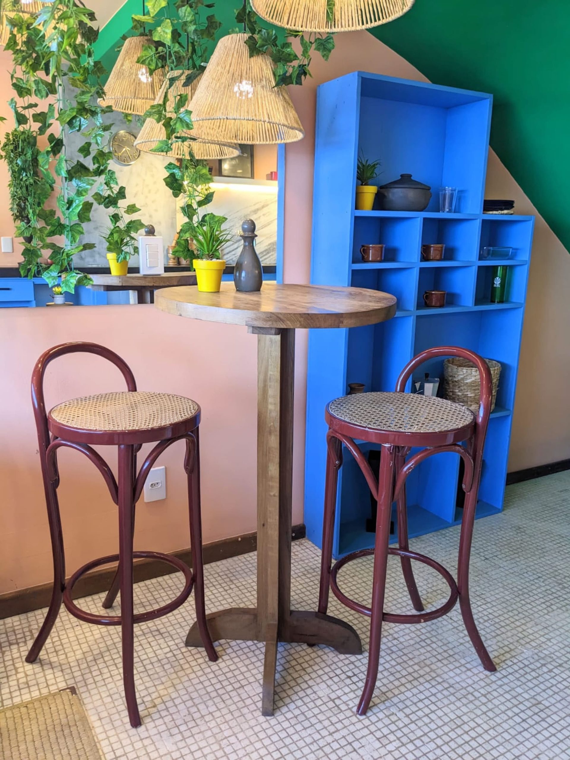 Seven hundred square feet spread across two floors inside a gated building with a daytime doorman, halfway up a hillside in Vidigal. Designed by a Los Angeles interior designer who believed the 360-degree view deserved better than beige. Magazine-featured. Solar-heated soaking tub. One 1920s Louis XV chair, restored. Two guests, one queen bed, zero elevator.